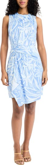 Perfect for your next weekend event, this mini-length dress is covered in artistic blooms and finished with an asymmetric hem.