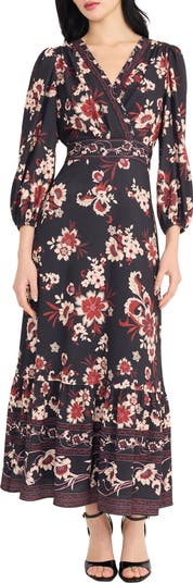 Delicate floral blooms create a beautiful gardenscape along an ankle-grazing maxi dress cut with a touch of stretch to ease your movements.