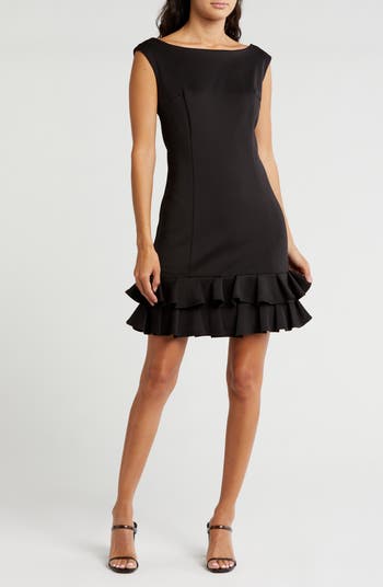 Perfect for a night out, this sassy sleeveless dress features a double-tiered ruffle hem for flirty style.
