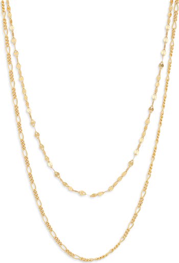 You'll love completing your look with this double layered chain necklace that is crafted from 14k-gold plated sterling silver.