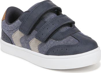 Lightweight and flexible soles support a well-cushioned sneaker featuring hook-and-loop vamp straps that are easy for little hands to secure.