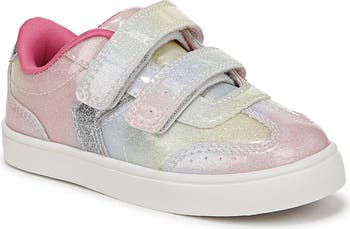A lightweight and flexible sole supports a well-cushioned sneaker featuring hook-and-loop vamp straps that are easy for little hands to secure.