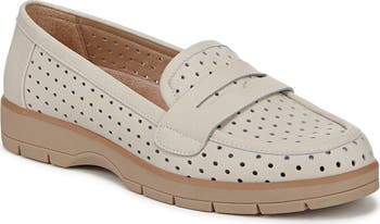 Cushioned comfort and arch support can be felt with every step in this flexible penny loafer done in perforated leather for enhanced breathability.