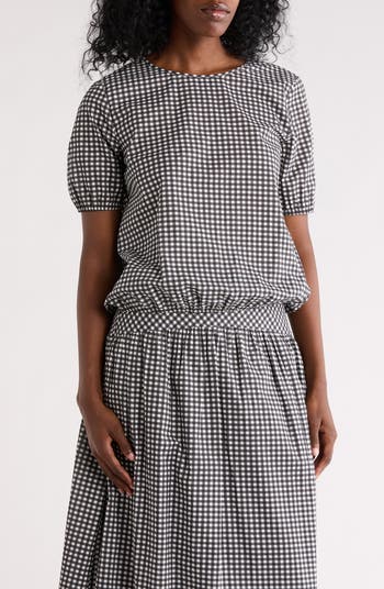 A bubbly silhouette lends on-trend appeal to a floral patterned top that delivers garden-party vibes to your everyday looks.