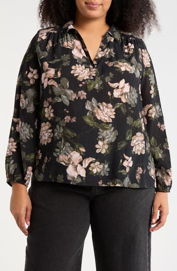 A ribbed texture lends depth and dimension to a collared top complete with an eye-catching print to elevate your everyday look.