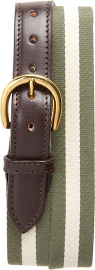 Classic and versatile, this belt made of striped webbing trimmed in polished fine-grain leather smartly finishes any sporty look.