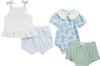 Add to baby's collection with this four-piece set of mix-and-match items that are all made from a soft, comfy cotton blend.