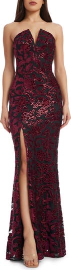 Fernanda Floral Sequin Strapless Evening Gown