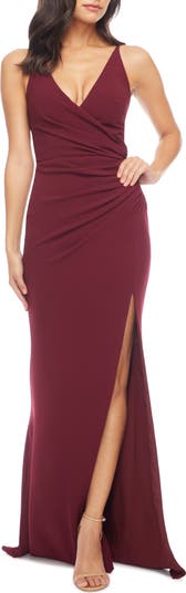 Strike a pose in this strikingly alluring gown that enhances every turn with its ruched waist and a leg-baring slit.