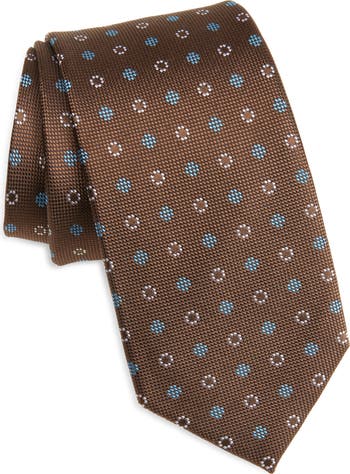 Mixed circles bring understated distinction to a silk tie that'll add a pop of pattern to any well-dressed look.