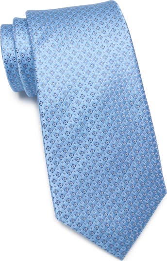 An intricate geometric floral design adds distinctive texture to a dapper silk tie that brings a pop of pattern to any well-dressed look.
