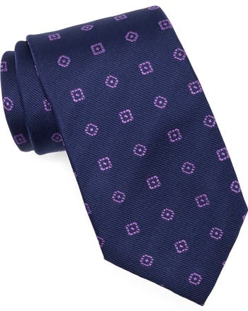 Woven geometric shapes bring depth and dimension to this rich silk tie making it a dapper choice for any formal event.