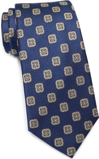 A medallion pattern adds understated detailing to a dapper silk tie offering the versatility to suit almost any well-dressed setting.