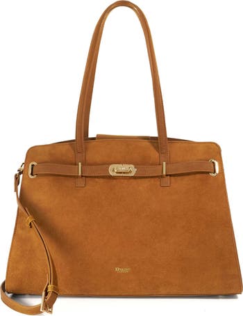 Keep your essentials organized and secure in this triple-compartment tote expertly made from textured leather.