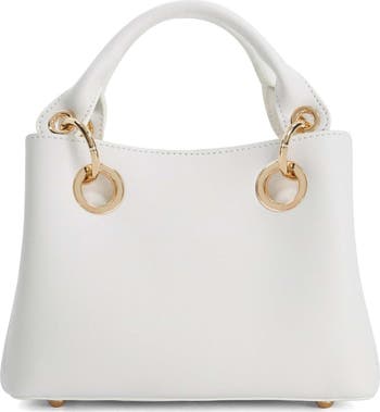 Glinting logo hardware and laser-cut perforations bring depth and dimension to a sized-down bag featuring multiple compartments and an optional crossbody strap for on-the-go convenience.