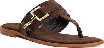 Polished bit hardware shines along the wide vamp strap of a summery sandal crafted in Italy from supple suede.