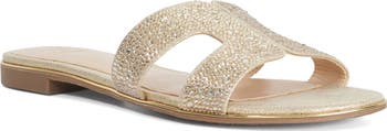 Tonal embellishments lend shimmer and shine to every stride you take in a slide sandal topped by a cutout vamp strap that exudes unmistakable summer style.