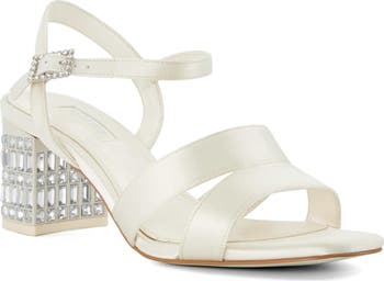 The modern bride will be obsessed with this easy-to-wear block-heeled sandal secured by satin straps and complete with shimmery rhinestone adornments.