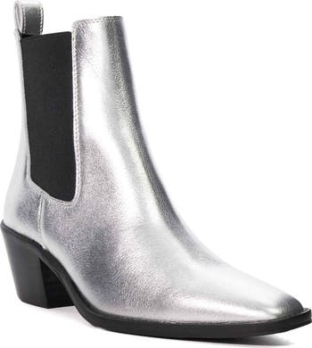 A metallic finish lends shimmer and shine to every stride you take in a chelsea boot crafted from Spanish leather to elevate your look.