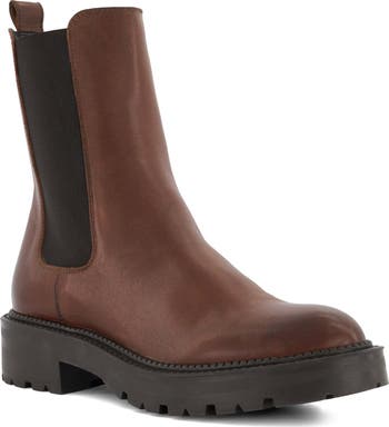 Side goring panels and a rear pull-tab lend easy wear to a versatile Chelsea boot lifted by a subtle platform and chunky block heel.