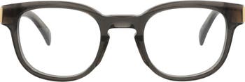 Elevate your everyday vision with these round optical glasses that feature gleaming temple accents on the textured arms and are ready for your prescription.