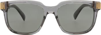 Stand out in these subtly transparent square sunglasses featuring gleaming temple accents.