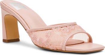 Delicate embroidered blossoms accent the airy mesh vamp strap of this mule sandal, finished with a squared toe and block heel for a fresh, effortless look.