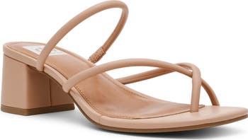 Tubular straps crisscross along the vamp of a modern slide sandal lifted by a wrapped block heel.
