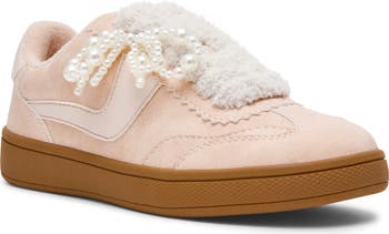 Faux-shearling lining and faux-pearl charms provide a cozy, trend-savvy finish for this sporty low-top sneaker.