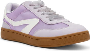 Swooping overlays add a retro-inspired element to a classic low-top sneaker set on white sole for a court-style finish.