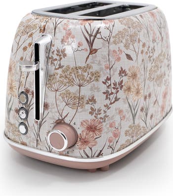 Bring a whimsical dose to your kitchen countertops with this must-have toaster covered in a delicate garden of blooms while the removable crumb tray makes for hassle-free cleaning.