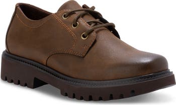 Soft micro-suede fabric and a foam-cushioned footbed offer all-day comfort in this faux-leather derby set on a lightweight lug grip sole for steady strides.