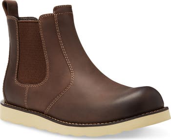 A durable leather Chelsea boot reinforced with triple stitching provides superior comfort with a memory-foam insole and flexible, grooved outsole.