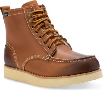 Burnished detailing defines the smooth leather upper of a signature lace-up boot built ground on a lugged rubber sole to increase your grip and traction.