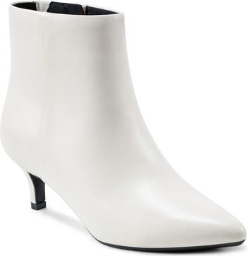 A pointy toe and kitten heel balance a streamlined bootie fitted with a cushy, arch-supporting insole for never-ending comfort.