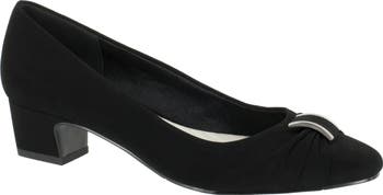 A striking ornament with ruched detailing ensures that the Eloise by Easy Street will be a timeless additional to your wardrobe. The modest heel, flexible outsole and generously padded insole are just a few of the comfort features built into this ladylike style. Sizing: True to size. N=narrow width, M=standard width, W=wide width, 2W=extra wide width