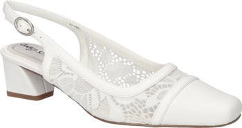 Floral-lace insets add beautiful breathability to this slingback pump set on a canted block heel and cushioned to make every step a comfortable one.