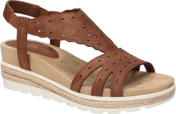 Subtle scalloping and cutout details add a breath of fresh air to this cushy and comfortable wedge sandal.