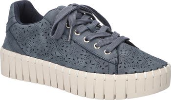 Floral perforations sweeten the look of a lace-up sneaker designed with a well-cushioned insole and set atop a chunky platform sole with whipstitched welt.