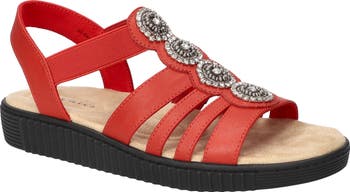 Sparkling crystal embellishments highlight the strappy profile of this sandal that delivers lasting comfort via a pillowy foam-cushioned footbed.