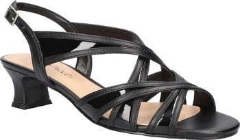Crossover straps bring contemporary style to an elegant slingback sandal lifted by a kitten heel.