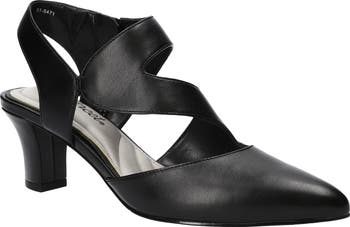 A strappy, asymmetrical design brings architectural flair to a pair of pumps with a padded insole for effortless wear.