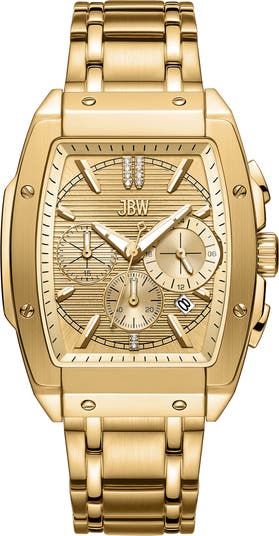 A curved tonneau case elevates a sophisticated bracelet-strap watch featuring a diamond-embellished dial, precise quartz movement and chronograph subdials.