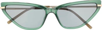 Turn heads with these subtly transparent sunglasses styled in a retro cat-eye silhouette and finished with gleaming metal arms.