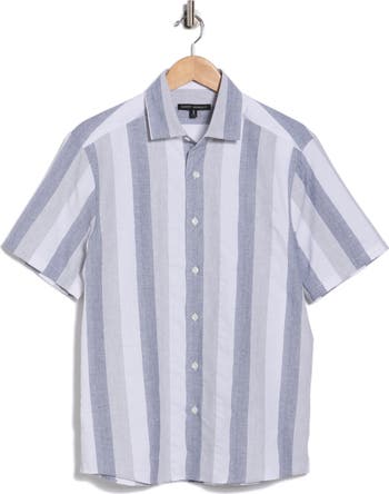 Cool stripes meet a relaxed fit in this easygoing short-sleeve button-up shirt crafted from a breathable cotton-based blend.