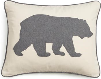 Channel outdoorsy style in your home decor with this cotton throw pillow centered with a patchwork bear.