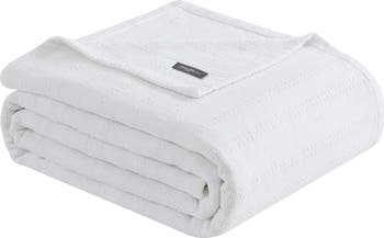 A midweight layering piece, this breathable cotton throw blanket features a tonal pattern of variegated stripes for effortlessly polished style.