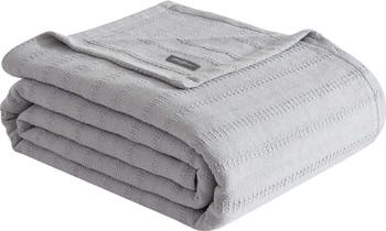 A midweight layering piece, this breathable cotton throw blanket features a tonal pattern of variegated stripes for effortlessly polished style.