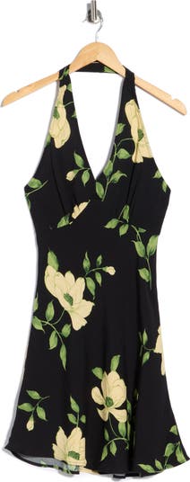 An A-line dress cut in a trendy halter silhouette is covered in pretty blooms to make it an instant date-night favorite.