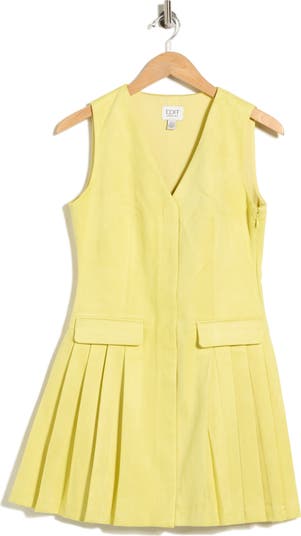 A drop-waist silhouette lends on-trend appeal to a stem-showing dress textured with soft pleats for dimensional intrigue.